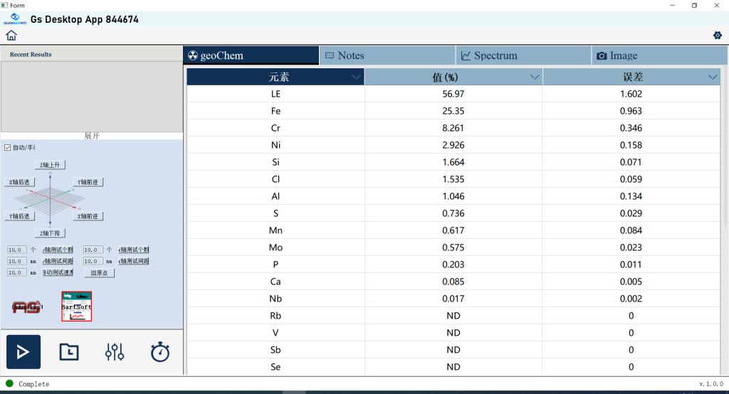 荧光分析系统:集成X光管、探测器与分析软件,具备多模式元素分析能力,分析范围覆盖Mg至Sb共37种元素。内置气压计与摄像头,支持自动校准与样品位置校正。