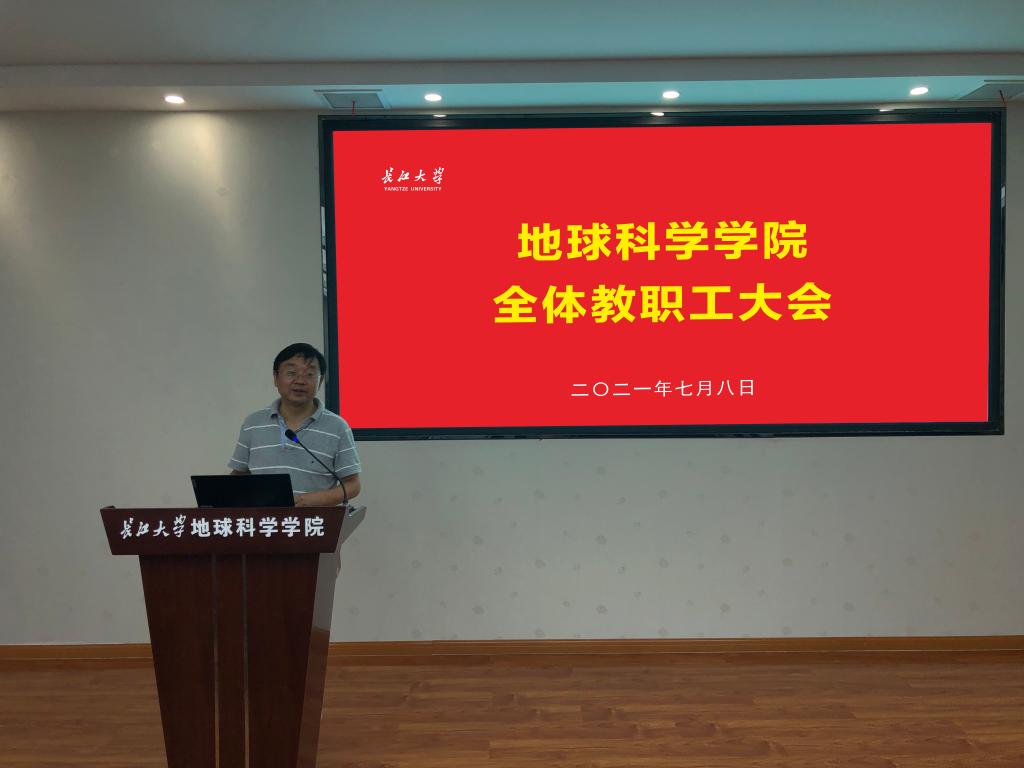 在石油科技大楼C301召开全院教职工大会,集中开展政治理论学习并通报部署近期工作。全体教职工参加,党委书记江万哲主持会议。