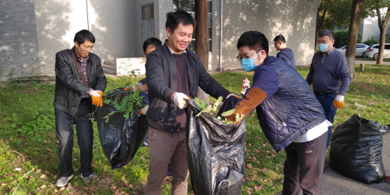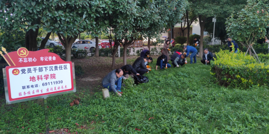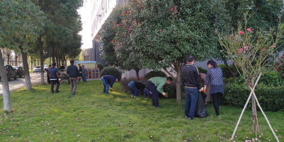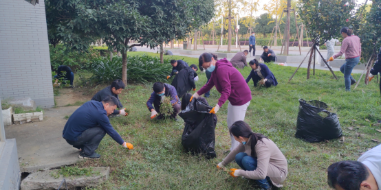 党委组织党员干部下沉开展“拔草护绿美化校园”服务活动。