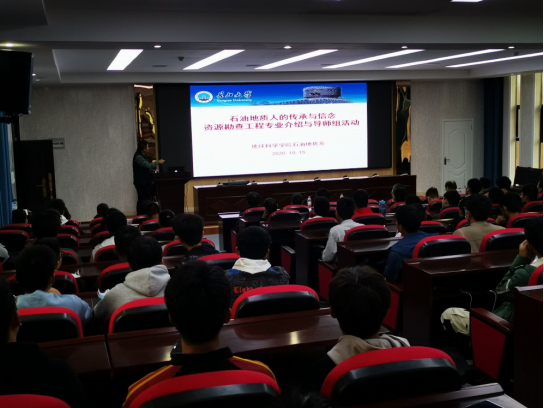 优良传统的继承,张昌民教授作为名师代表,向在座新生讲述了个人成长背景和我国油气行业的发展和前景等,并向学生们介绍了从学校走出去的一批优秀校友如王铁冠、邓运华院士的相关事迹,用这些优秀校友事迹勉励学生们努力学习、积极向上,争取成为优秀的石油地质工作者。听完张昌民教授的介绍,学生备受鼓舞,更加坚定了从事石油地质的决心与信心。