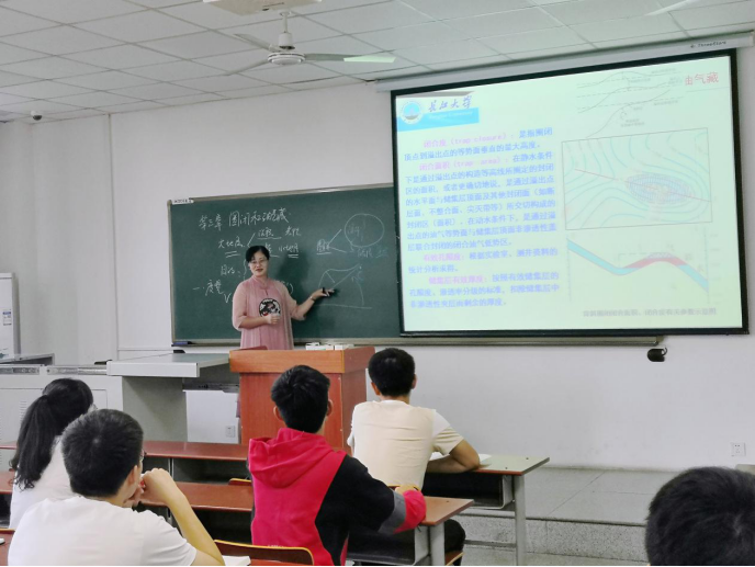 石油系林小云教授给资工(油光)21801班上了一节《石油与天然气地质学》专业课,石油系十余名青年教师到场随堂听课和教学观摩。