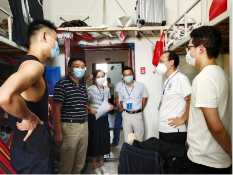 6月16日下午五点半,学院领导和班主任老师、辅导员一起走访了毕业生宿舍,表达学院老师对全体毕业生的关怀与期待。胡院长每到一个寝室,都细心询问同学们的返校安排,未来计划,叮嘱同学们在特殊的疫情期间,一定要既注意个人防护,又整理好个人的毕业资料,完成手续的办理,为大学四年画一个圆满的句号,胡院长还表示:学院永远是同学们的家,期待大家以后常回家看看。来自资工21603班的王雷同学在交流中谈到“离校前能见到这么多老师来关心自己,觉得很幸福,也很感动,真心感谢学院四年的培养,以后有时间一定要再回来。”