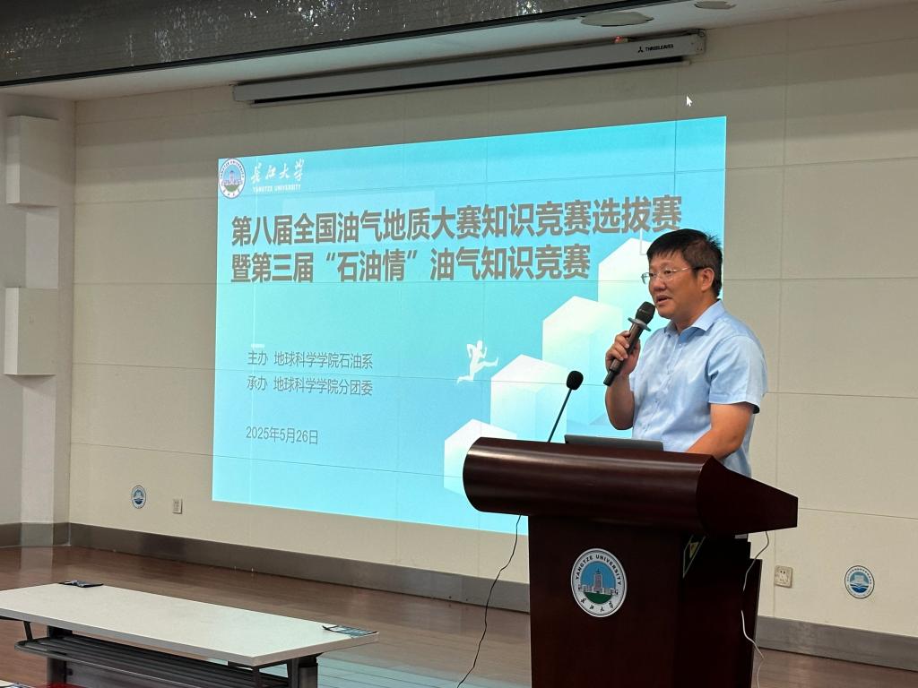 比赛伊始,各参赛队伍依次进行自我介绍。胡忠贵副院长致开幕词,他表示此次活动不仅仅是一场知识的较量,更是一次石油精神的传承,希望同学们赛出风采,提升能力,期待同学们在第八届全国油气地质大赛知识竞赛总决赛的精彩表现。