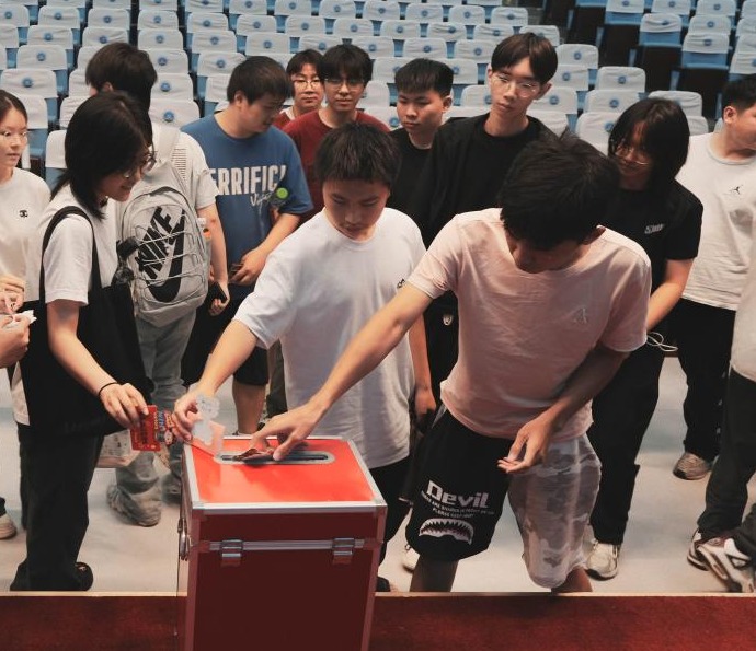 校歌雄浑激昂的旋律圆满落下帷幕,22级同学们在心愿箱中留下自己的考研目标。