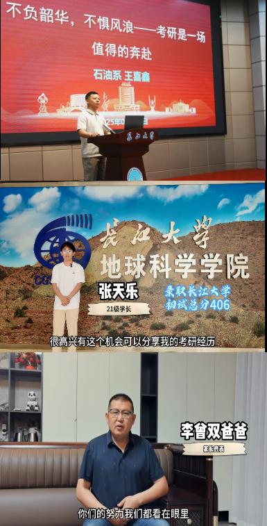 导师代表王喜鑫老师在发言中,结合自己求学求职的心路历程,分享自己和学生相处的点滴经历,鼓励同学们在考验路上做到持之以恒,他告诉同学们:“考研不是选拔最聪明的人,而是能坚持的人,真正的坚持是在没有看到结果的时候,依然持续的努力”。现场还播放了班主任和学生家长代表的祝福视频,为22级同学送上考研祝福。