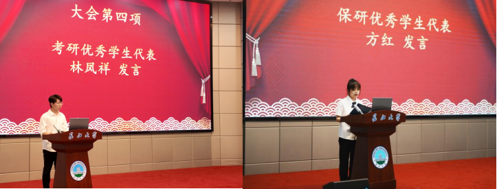 学生代表方红、林凤祥分别分享自己的保研、考研经验。方红同学在发言中说:“期待来年金秋九月,能有更多同学加入嘟嘟成人网