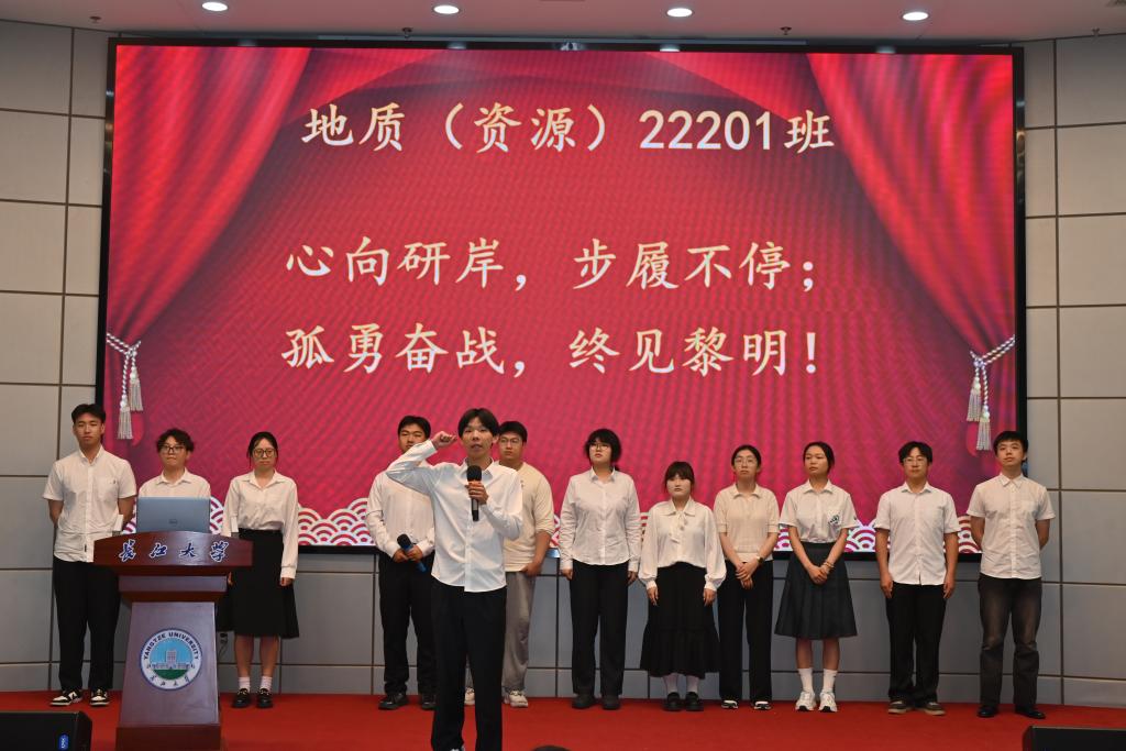 2022级各班级代表带领班级同学宣誓“韧劲逐梦,百炼成钢;勇攀书山,折桂成名…”。资工22202班史嘉欣带领全体同学集体宣誓。大家昂首挺胸,灼灼目光聚焦在远方那座梦想灯塔,他们以满腔赤诚为墨、坚定信念为笔,撰写对考研这场硬仗的不败誓言。