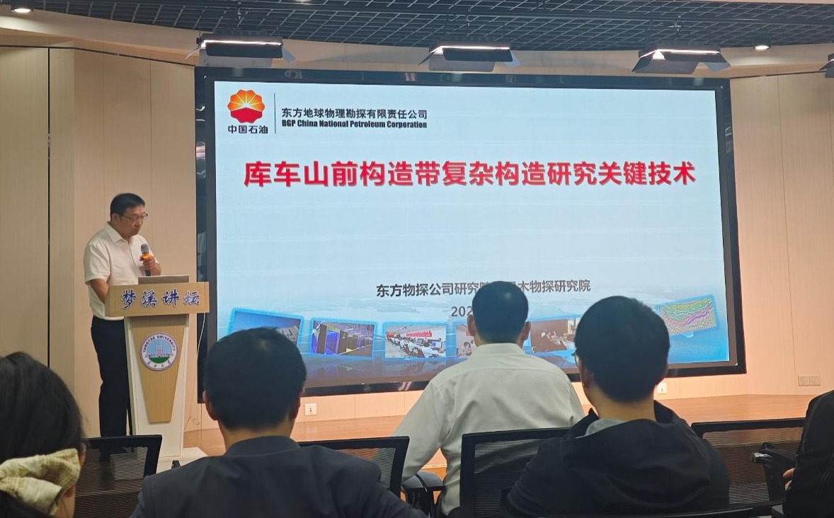 汇报中,马书记以“塔里木盆地库车山前复杂构造研究关键技术”为核心,从五个维度展开解读:一是系统介绍库车山前勘探领域的地质概况与勘探背景;二是剖析区域内油气藏特征与成藏规律;三是分享针对复杂山地条件形成的勘探研究思路;四是详解适配库车地质特点的配套研究技术体系;五是阐述相关技术在实际勘探中的推广应用场景及取得的重大成效。马书记的报告内容紧密结合一线实践,既有理论深度,又具实操指导性,为广大师生开阔了眼界。
