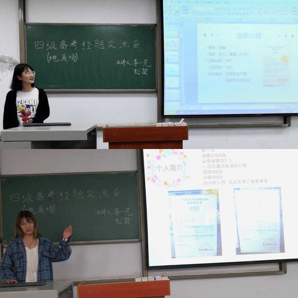 全体大一同学分别在A107、A108和A109教室分专业举行了英语四级备考经验交流会。主讲人分别是资工专业的陈芷若、王明敏,地质专业的李一凡、刘苗以及地信专业的杨添翔、罗慈航等人。
