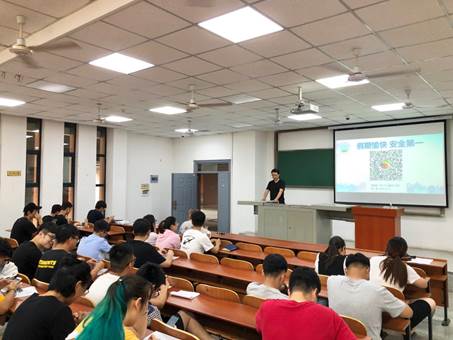 于武教B-103教室召开了2019年暑期留校生安全教育大会,学工办肖彬老师、潘志远老师、张严老师以及嘟嘟成人网