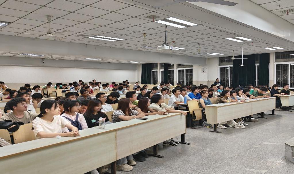 24级学生目前的英语学习进度和整体情况。通过具体的数据和实例,让同学们对自身的学习现状有了更为清晰、直观的认识。同时,结合实际和学生特点,赵老师介绍了目前针对 24级学生英语四级学习所制定的各种政策与措施。这些政策与措施涵盖了学习指导、资源支持、监督管理等多个方面,为同学们的备考之路指明了方向,也做好了坚实的保障。