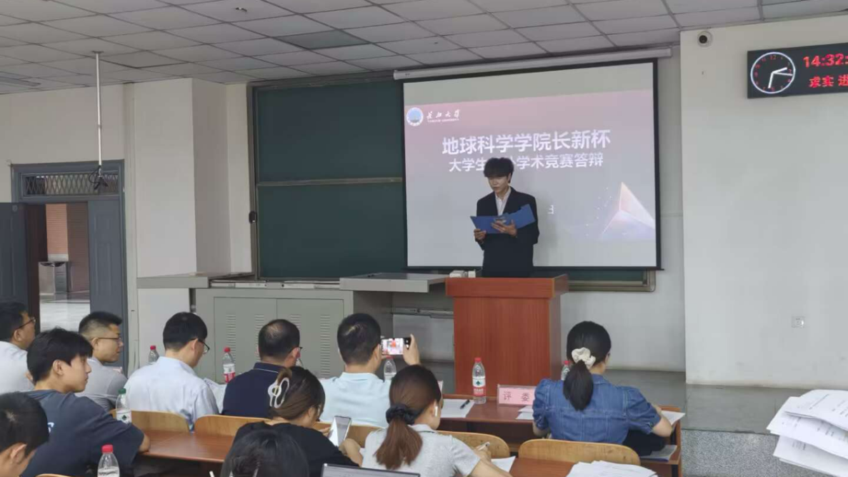 学生创新精神,提升实践能力,9月29日下午在武教B103教室举办了“长新杯”大学生课外学术科技作品竞赛的院赛答辩。院长朱光有,地质系主任李涛、石油系主任饶松、地科系主任刘彬、地信系主任刘远刚以及院团委书记郭霖六位老师担任评委。