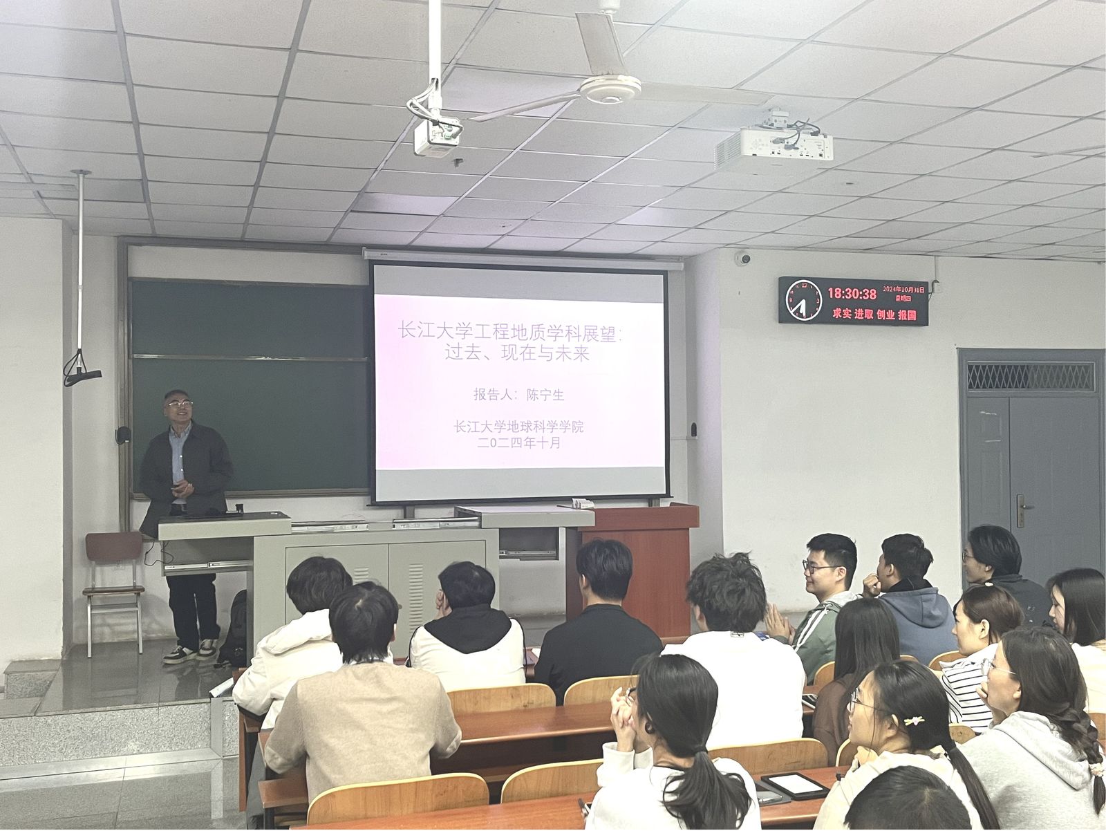 工程地质学科展望——过去、现在和未来”的主题班会。陈教授团队教师、22和23级地质系全体本科生参会,现场掌声雷动,气氛热烈。