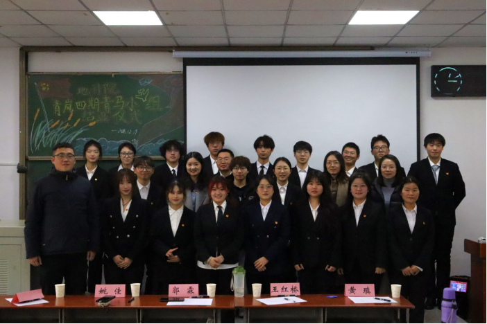 第四期“青岚”青马小组结业大会在A108教室举行,22名学员全体参会,学工办王红桥、郭霖、黄瑱和乔宇四位老师参与。
