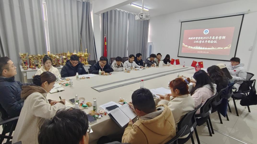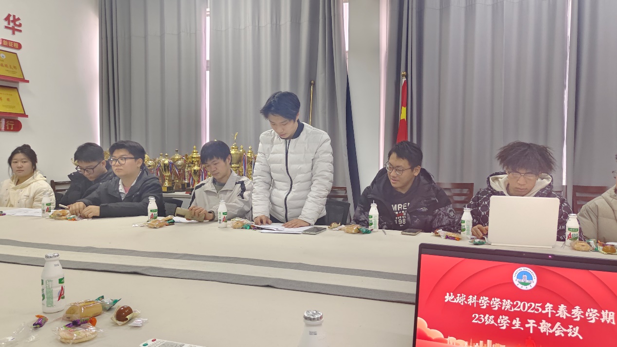 于2月21日中午12:00,在华林公寓九栋六楼会议室召开了地科院23级班干部经验分享交流会。活动由23级辅导员乔宇老师主持,辅导员毕浩浩老师参加了此次会议。