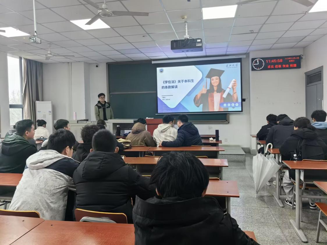 (通讯员 杨晟 吴思缘)3月11日,学院举行了《中华人民共和国学位法》的学干培训会。各班级班长、团支书、学习委员等学生骨干积极参与,培训会旨在深入学习《学位法》,推动学校学位授予工作的规范化与科学化。