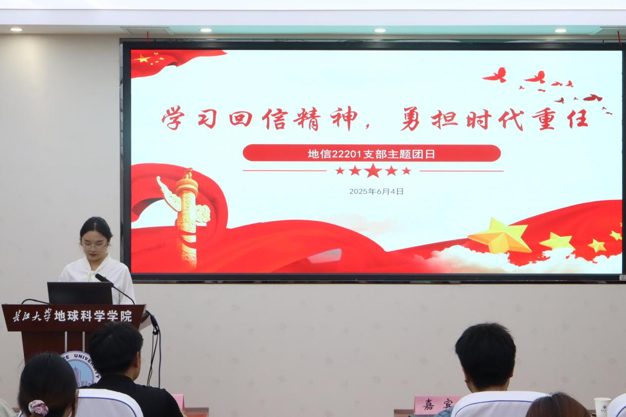 地信22201班于6月4日下午在石油科技大楼C301会议室开展主题教育实践活动。本次活动以“学习回信精神,勇担时代重任”为主题,引领青年学子深刻思考如何将个人成长融入国家发展大局,对围绕服务西部、奉献基层的时代课题展开热烈讨论。学生事务部荆鑫老师、地物学院叶丽珣老师、地科院冯舒老师、毕浩浩老师、地信22201班全体同学、油工学院、资环学院、传媒学院的学生代表参加活动。