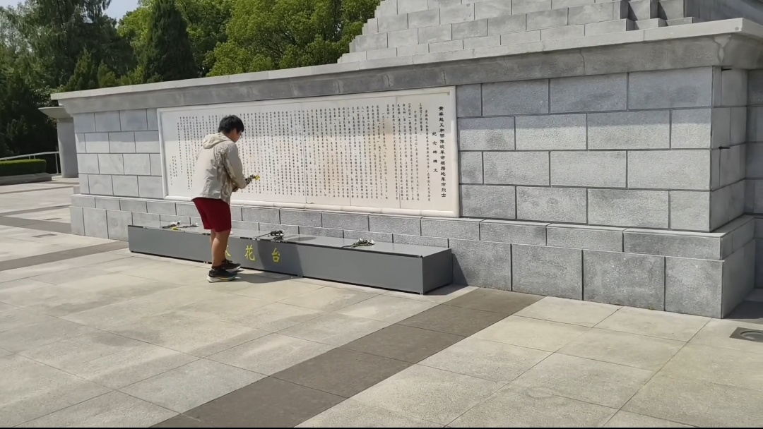 图1 郭嘉栋在烈士碑前鲜花