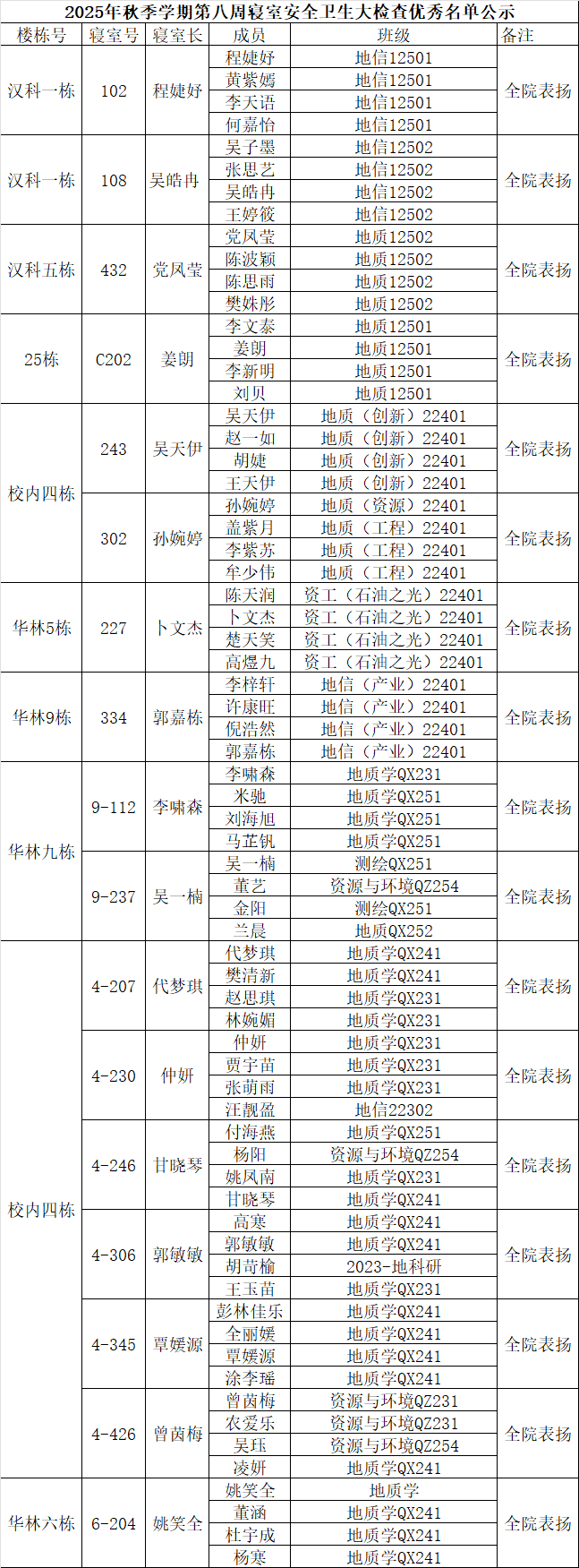 于10月30日开展了第8周学生宿舍自查工作,现将检查情况通报如下