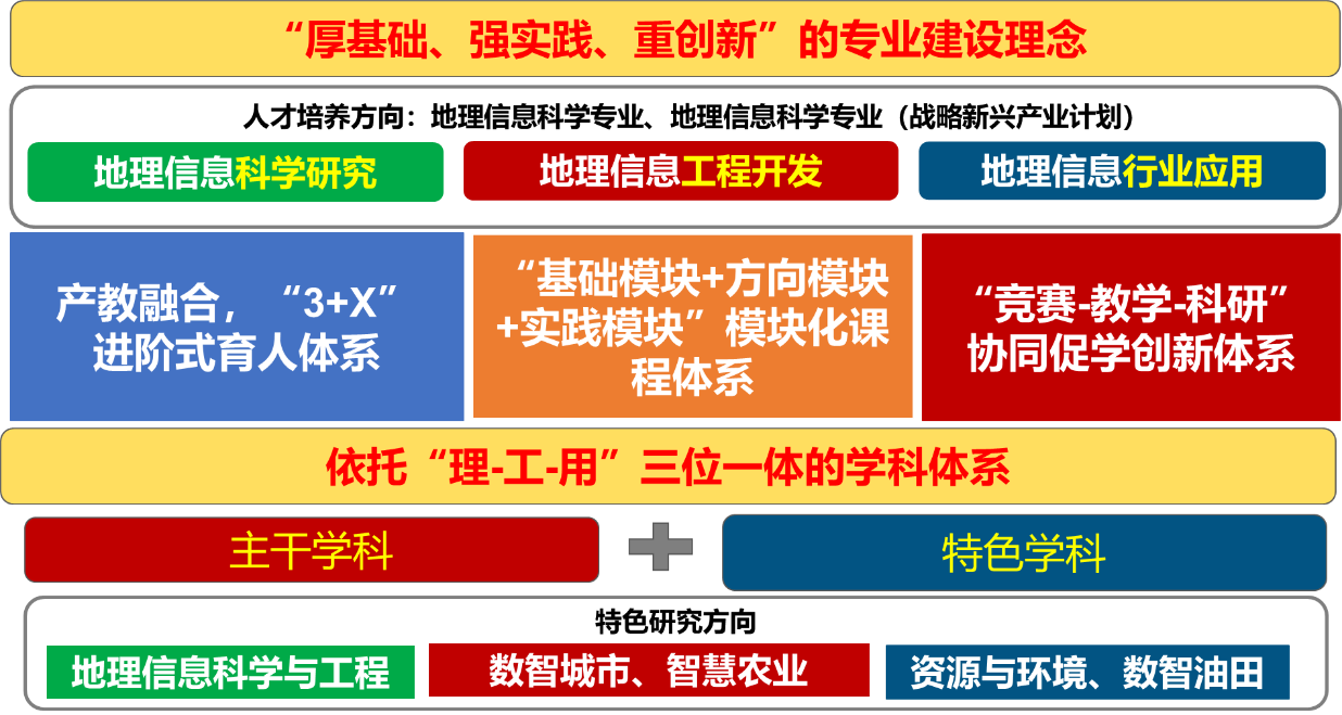 “理-工-用”三位一体学科体系,致力于培养能够解决解决资源开发、环境保护、城市管理智慧农业等领域实际问题的复合型科技人才。