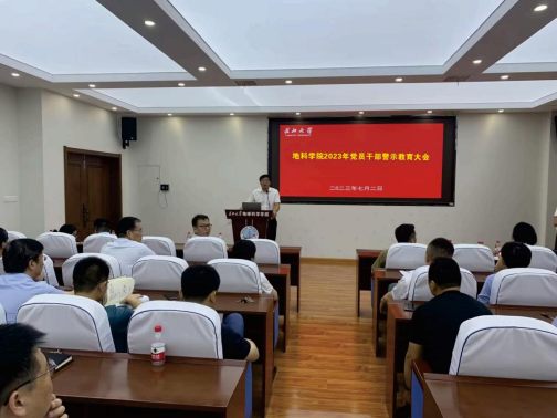 于7月2日在石油科技大楼C301会议室召开学院2023年党员干部警示教育大会。会议由院党委书记杨全辉主持。