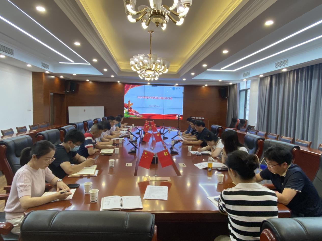党委理论学习中心组在石油科技大楼C201会议室开展六月份中心组政治理论学习会议。学院党委理论学习中心组成员、系(中心)主任、支部书记、学院科级干部参与了本次学习,会议由学院党委书记杨全辉主持。