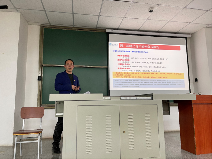 入党积极分子集中授课环节在武教B-103开展,学院党委书记江万哲以《新时代青年的使命与担当——学习领会十九届五中全会精神》为主题,为嘟嘟成人网