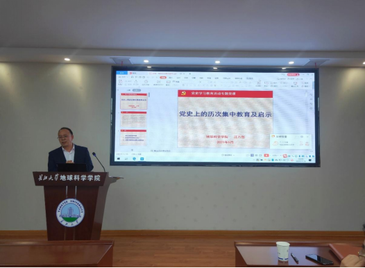 党史学习教育的安排,5月20日下午,党委书记江万哲在C301会议室给全体教工上了题为“党史上的历次集中教育及启示”的专题党课。