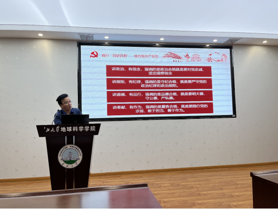 (通讯员 冉斌 李永健)为积极响应党员干部下基层察民情解民忧暖民心实践活动,引导学生进一步了解党的历史,深化党的思想精神,培育担当时代大任的中国青年,10月14日晚7点,李强副院长在石油科技大楼C301会议室,以“学党史,践初心,争做新时代合格共产党员”为主题,为本科生党支部讲授了一堂生动的党课。