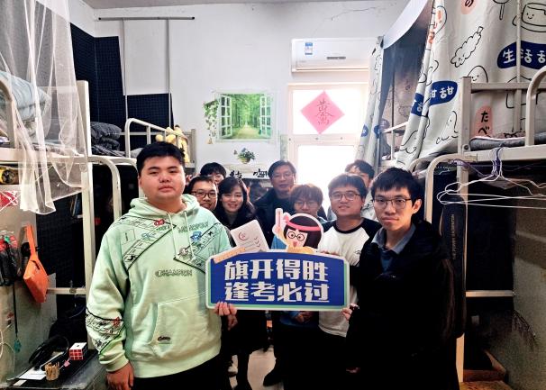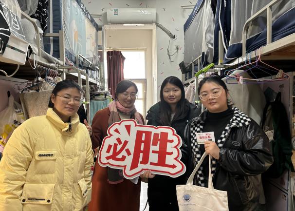 考研学子,学院领导、21级班主任及学工办全体辅导员于12月17日中午走访2021级“备战”寝室,送去考前关怀,为同学们带来一份特别的温暖。