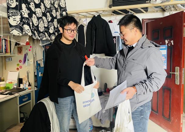 同学们对老师们的支持与关爱表示感激,地质(资源)22101班范秀武同学说:“老师们利用午休时间亲自来到宿舍看望大家,让我们感受到浓浓的暖意,更是给大家打了一针强有力的‘定心剂’,相信我们都必将不负众望、成功‘上岸’!”