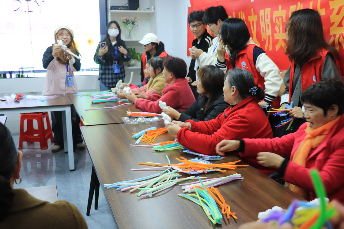 与传媒学院学生志愿者于11月21日下午前往高湖社区老年人服务中心,为社区老年人开展了扭扭棒创意手工活动。此次活动旨在通过创意手工,为社区的老年人们带去欢乐,同时进一步加深学院与社区的联系,共同搭建起一座传递爱与希望的桥梁。