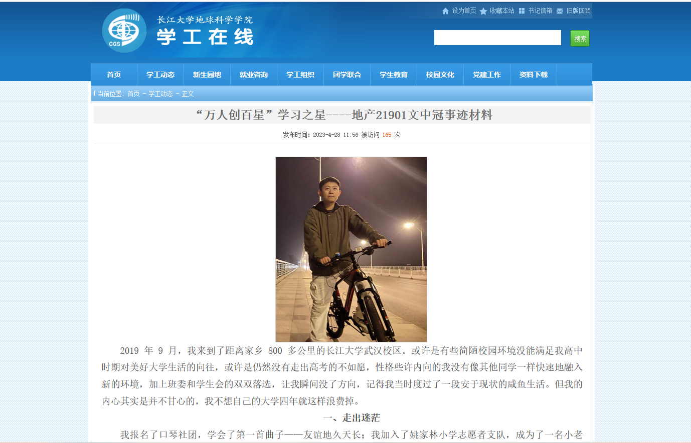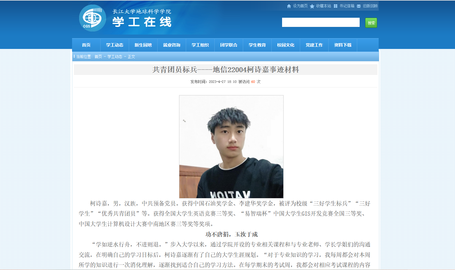 在官网和官微上推出“共青团员标兵”和“校园明星”宣传展示。柯诗嘉刻苦学习三年成绩保持专业第一,徐涛醉心科研发表多篇权威论文,刘亚唯积极为同学们服务,文中冠多次荣获国家级竞赛奖励。大家的榜样事迹鼓舞全院同学牢记梦想,不负韶华。