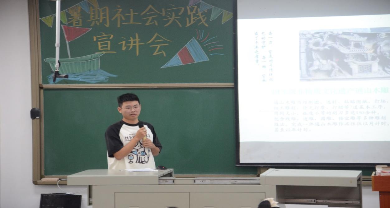 于9月19日18:30在武教B-107教室开展2024年暑期社会实践成果分享会。团委书记郭霖老师、辅导员姚佳老师参与本次活动。