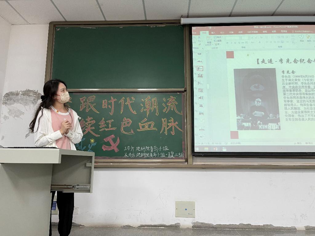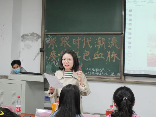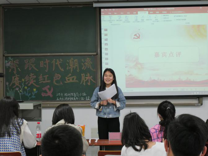 本次活动的主题为“紧跟时代浪潮,赓续红色血脉”,由“青岚”一组组员进行答辩,“青岚”二组组员进行筹办工作,活动邀请到地科院团委书记郭霖老师和地科院第一届青马小组班导郑娜为评委。
