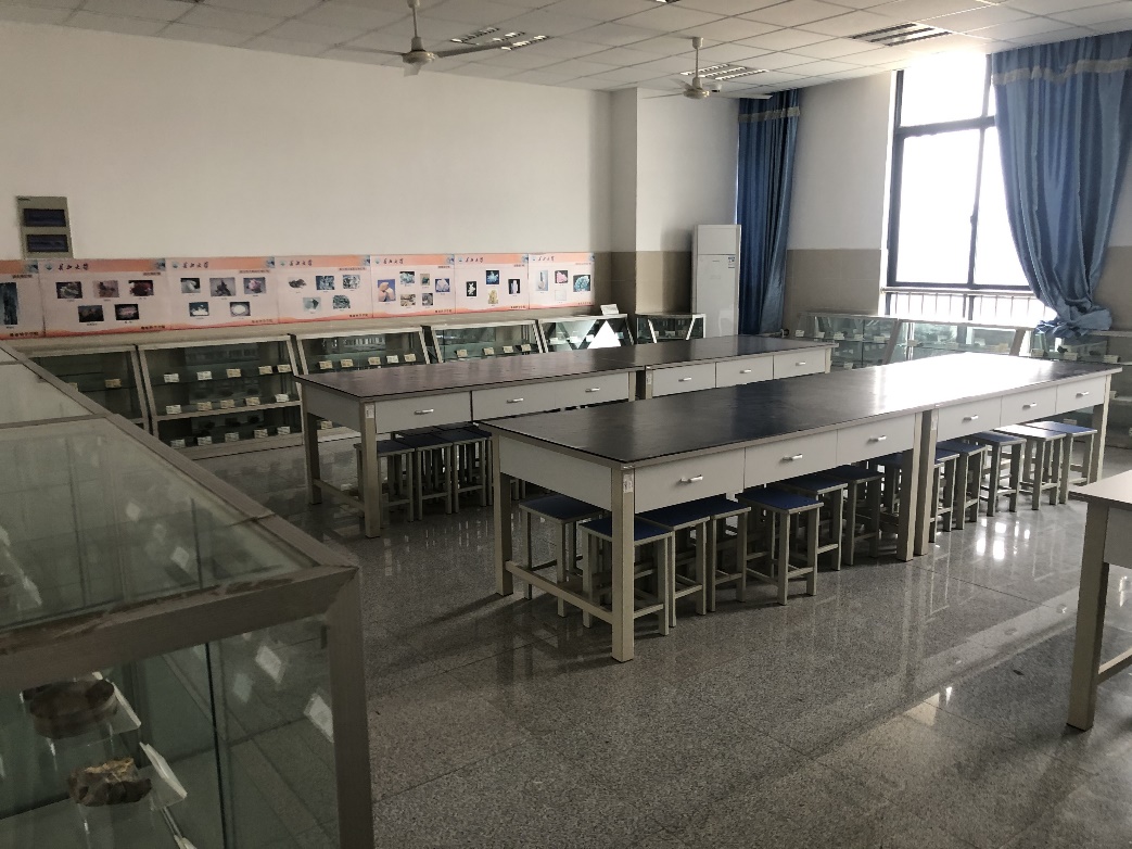 实验中心拥有岩石矿物陈列室、古生物陈列室和沉积构造实验室等三个基础地质类开放实验室。