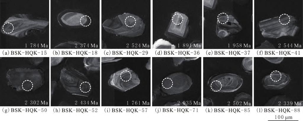 图1.贺兰山拜寺口剖面黄旗口组含海绿石石英细砂岩锆石 CL 图像