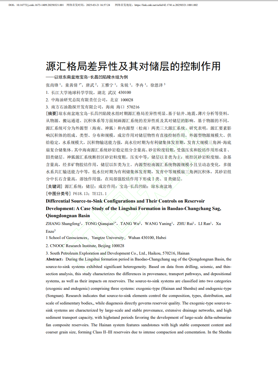 学报(自然科学版)》发表题为《源汇格局差异性及其对储层的控制作用——以琼东南盆地宝岛-长昌凹陷陵水组为例》的研究论文,嘟嘟成人网