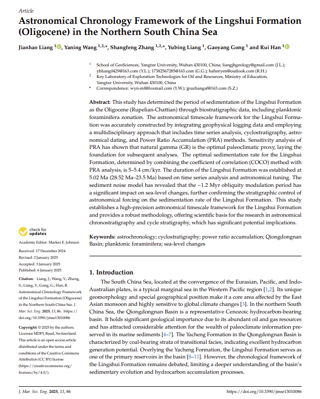 地质学专业硕士研究生梁建昊在中科院二区期刊《Journal of Marine Science and Engineering》(IF=2.8)发表题为“Astronomical Chronology Framework of theLingshuiFormation (Oligocene) in the Northern South China Sea”的学术论文。嘟嘟成人网