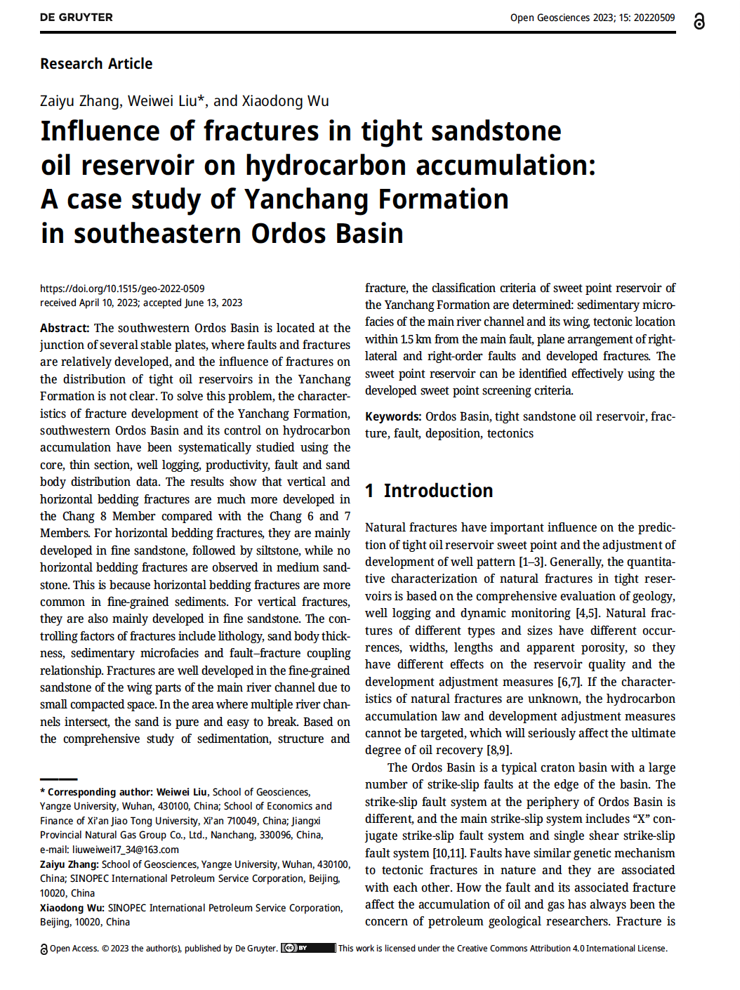 硕士生张在玉在SCI收录期刊《Open Geosciences》上发表题为“Influence of fractures in tightsandstoneoil reservoir on hydrocarbon accumulation: A case study of Yanchang Formation in southeastern Ordos Basin”的研究论文,嘟嘟成人网
