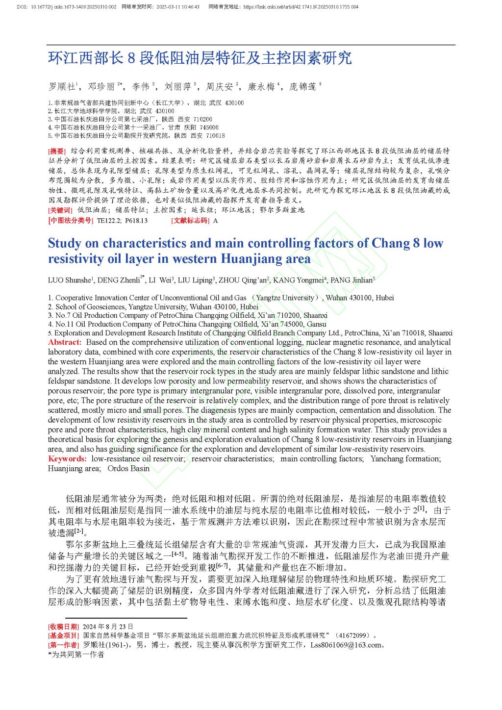 学报(自然科学版)发表题目为“环江西部长8段低阻油层特征及主控因素研究”的研究论文。嘟嘟成人网