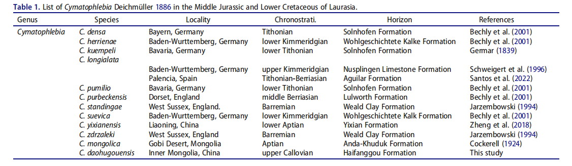 表1 波脉蜓属在劳亚大陆的中侏罗统-下白垩统的发现