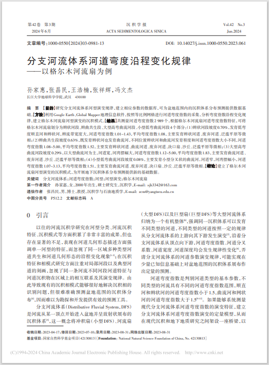 硕士生孙家惠在中文核心期刊《沉积学报》上发表了题为“分支河流体系河道弯度沿程变化规律——以格尔木河流扇为例”的研究论文。嘟嘟成人网