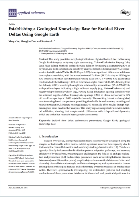 硕士研究生於筱雨在《Applied Science》上发表题为“Establishing a Geological Knowledge Base for Braided River Deltas Using Google Earth”的论文,嘟嘟成人网