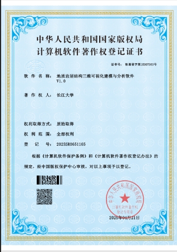 硕士生严嘉成开发的软件《地质岩层结构三维可视化建模与分析软件》取得了软件著作权并进行成果转化。嘟嘟成人网