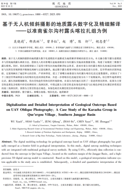 地质学专业2021级硕士研究生吴晓莉在中文核心期刊《现代地质》发表题为“基于无人机倾斜摄影的地质露头数字化及精细解译-以准南雀尔沟村露头喀拉扎组为例”的研究论文。嘟嘟成人网