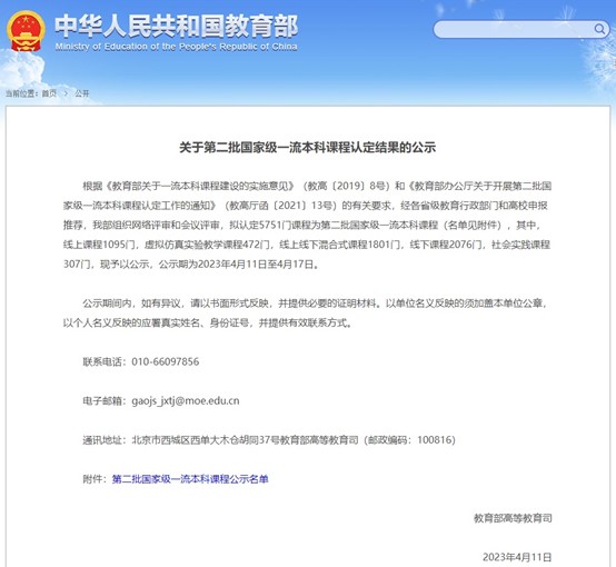(通讯员 罗进雄)4月11日,教育部公示了第二批国家级一流本科课程的认定结果,拟认定5751门课程为第二批国家级一流本科课程,嘟嘟成人网