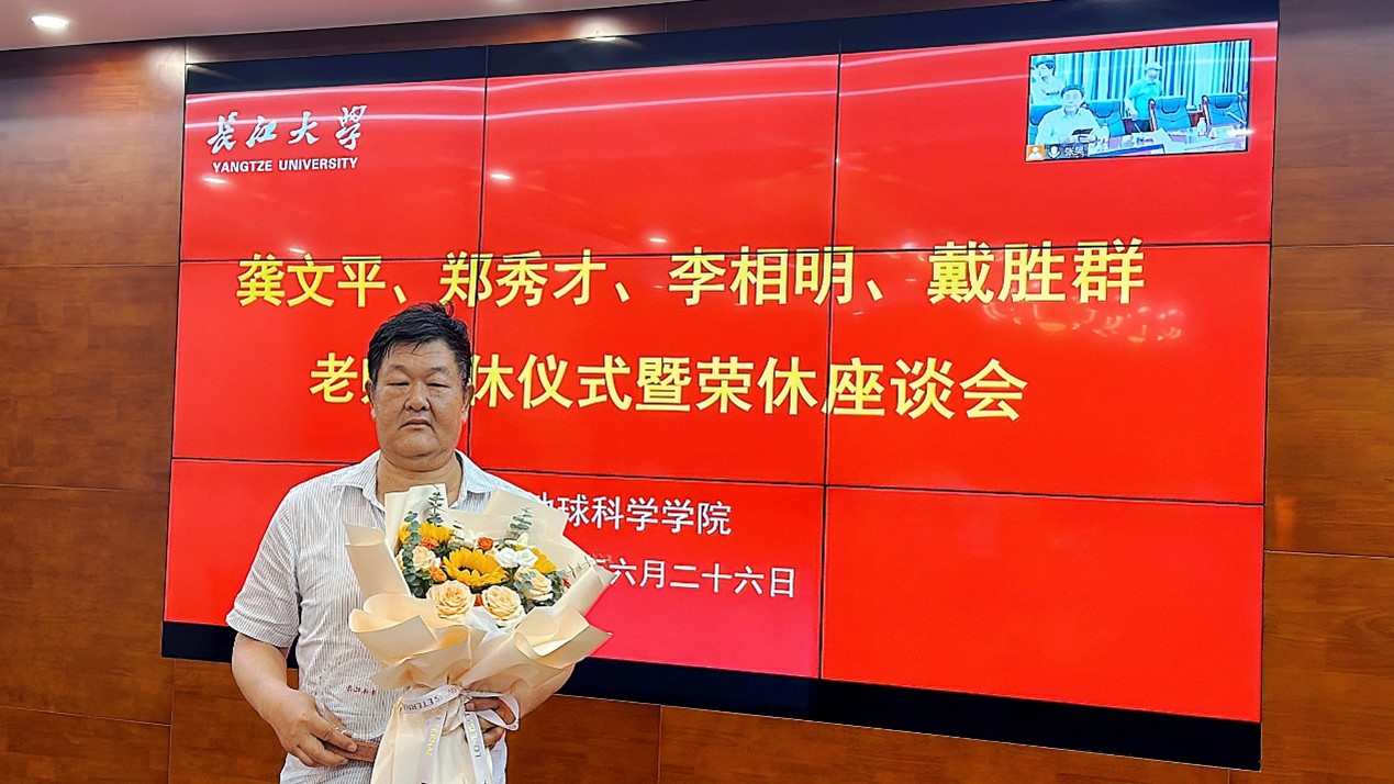 在石油科技大楼C201室举行了2023年退休教师荣休仪式。学院领导、地质系和石油系部分教师代表齐聚一堂,热烈欢送龚文平教授、郑秀才教授、李相明副教授、戴胜群副教授四位老师光荣退休。学院党委书记杨全辉主持荣休仪式。