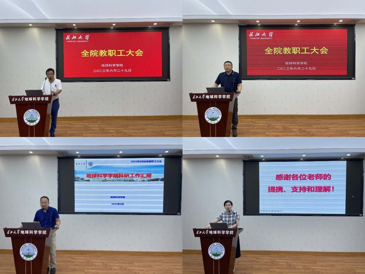 在石油科技大楼C301会议室召开全院教职工大会,通报和部署学院期末及其暑期重点工作,并进行政治理论学习。会议由院党委书记杨全辉主持。