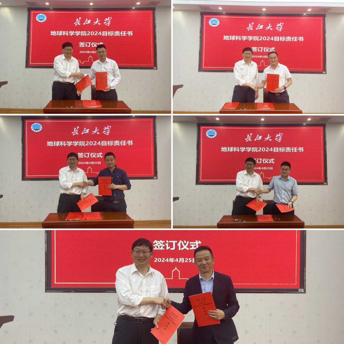 为增强全院教师发展的使命感,明晰职责和任务,学院举行了2024年各系(中心)目标管理责任书签订仪式,石油系主任饶松,地质系主任李涛,地信系主任刘远刚,地科系主任刘彬,实验中心主任丰勇依次上台与朱光有院长签订2024年各系目标管理责任书,签下一份责任,签下一份承诺。